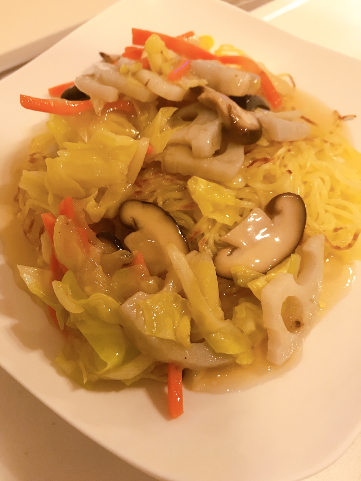 五目あんかけかた焼きそばと付け合せおかずの献立レシピ あゆmemo