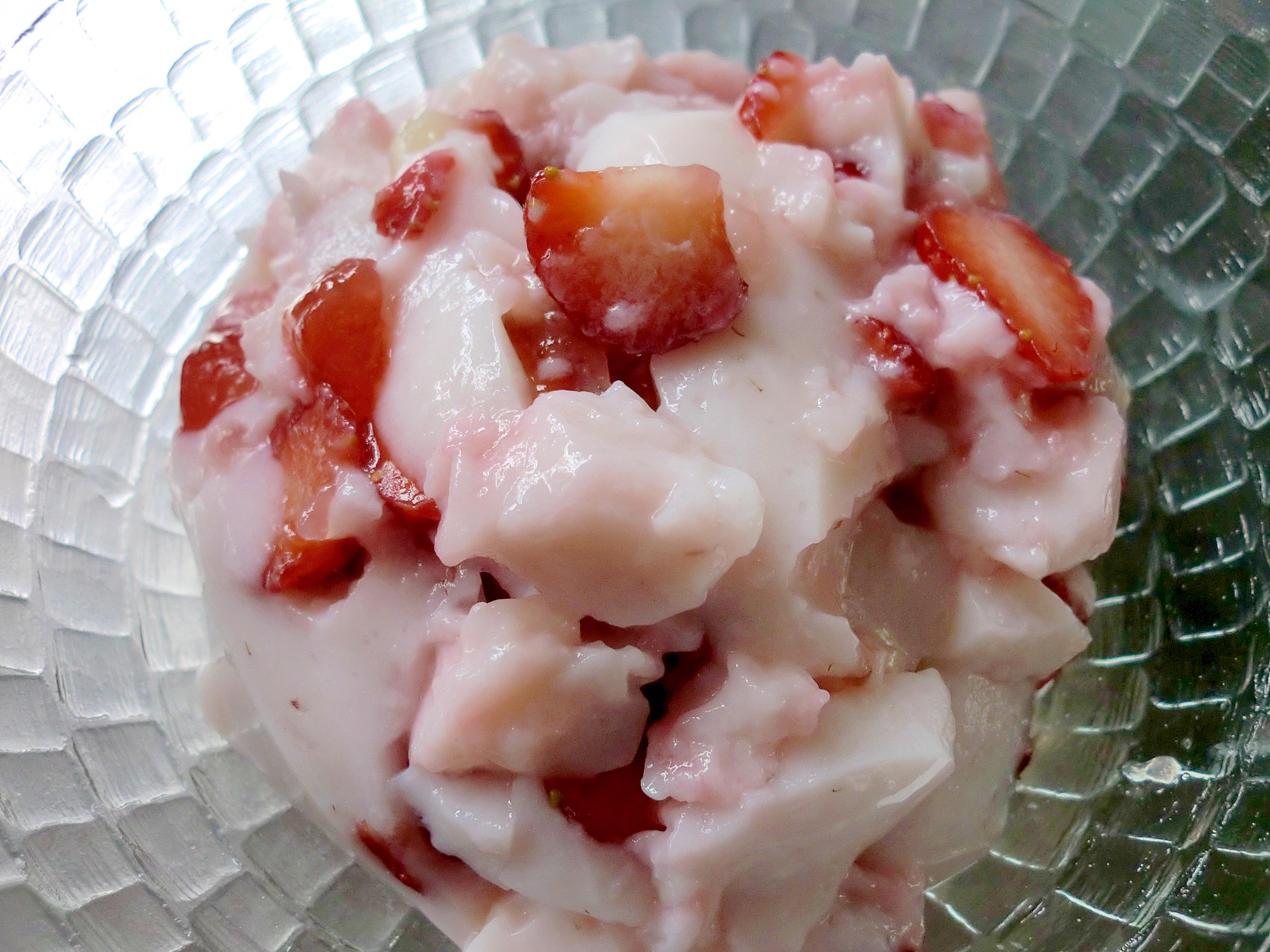 いちごフルーチェ風デザートの材料 ・lmペクチン 5g ・砂糖 g ・いちご 6粒 ・レモン汁 大さじ1 ・水 100ml ペクチンは、大手スーパーなどで販売されていますが、lmタイプを選んで下さい。 牛乳と反応して固まるペクチンはlmタイプだけです。 牛乳寒天の基本的なレシピ 寒天が固まる温度 牛乳寒天が固まらない理由 理由①:寒天が溶けていない 理由②:牛乳を沸騰させた 理由③:牛乳が冷たい 理由④:すっぱいものを一緒に混ぜた ドロドロになった牛乳寒天を戻すには まとめ 21年02月12日 本日は山町にてユニット配膳を行いました。 本日のお献立 ごはん ナルトと三つ葉のすまし汁 から揚げ 茄子の野菜あんかけ 手作りいちごパフェ から揚げは、鶏もも肉に唐揚げ粉をまぶして、その場で 調理スタッフが揚げました